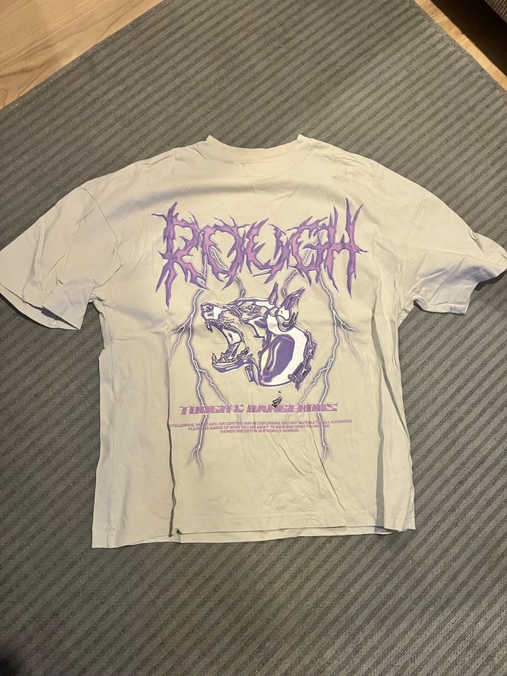 Pamuk kumaştan, salaş kesim, kısa kollu kadın tişörtü. Mor pastel baskılı, yuvarlak yakalı, grunge punk tarzı günlük rahat kullanım için uygun.