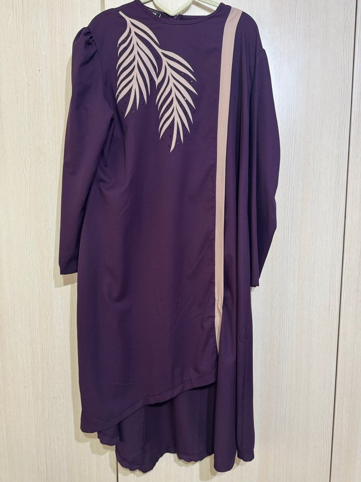 Mor Baskılı Uzun tesettür takım