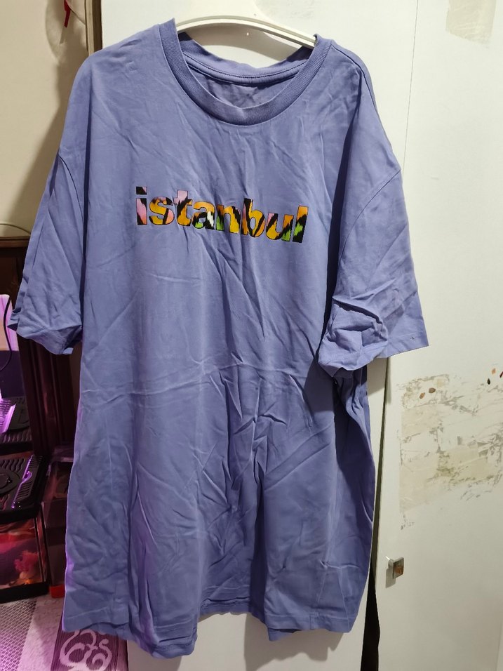 Mor, pastel tonlarında batik desenli, kısa kollu ve salaş kesim kadın tişörtü. Önünde 'istanbul' yazısı bulunur ve günlük kullanıma uygundur.