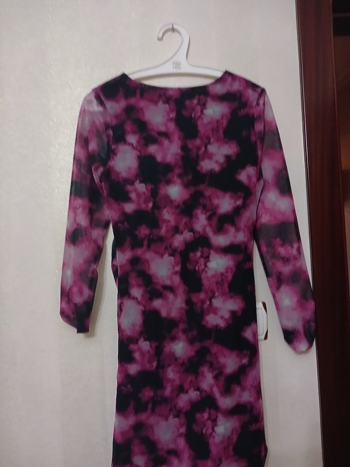 Mor tonlarında koyu batik desenli, uzun kollu ve iç astarlı vücudu tamamen saran mini elbise. 170 boyundayım bana tam mini oluyor 165 ve altı rahat giyebilir