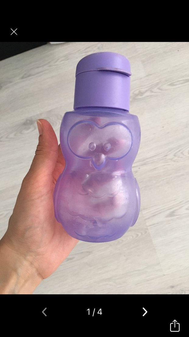 Kolay tutulabilen ve güvenli besleme için tasarlanmış mor pastel baykuş figürlü bebek biberonu.