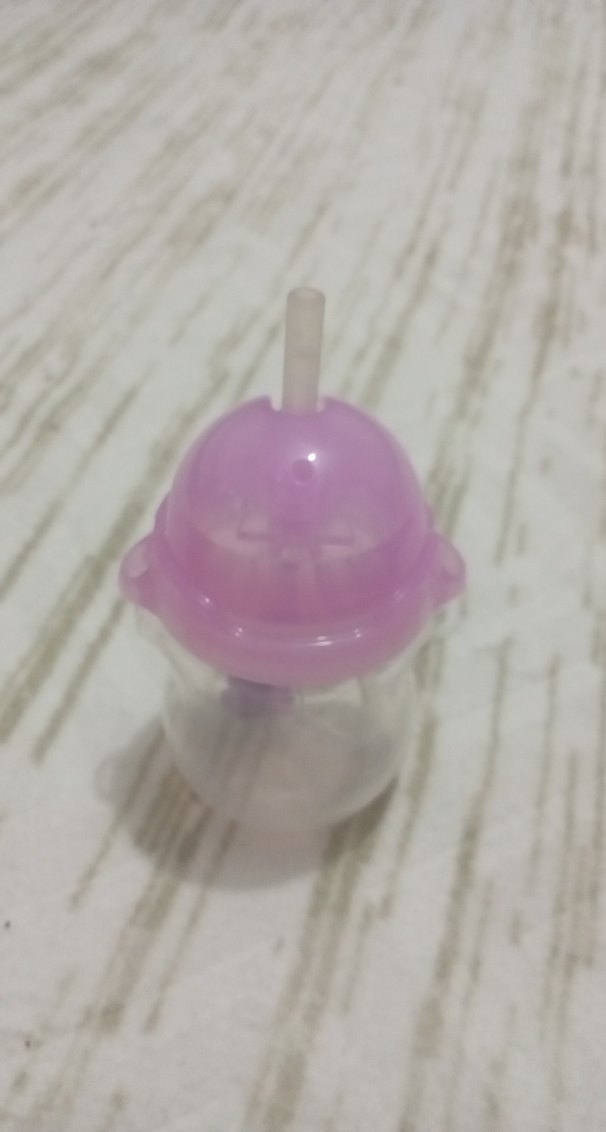 Mor renkli, renkli kapaklı ve pipetli bebek biberonu. Bebekler için uygundur. sadece kapak kilidi ve kulp yok onun haricinde sıfır ürün hiç kullanılmadı