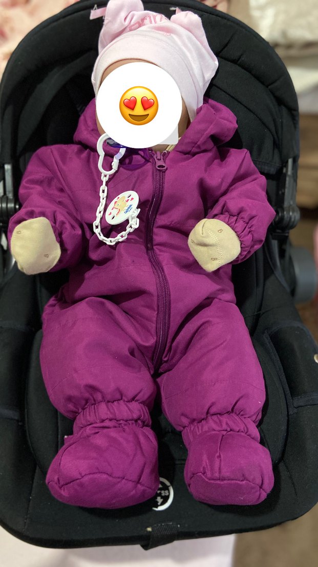 Koyu mor renkte, kapüşonlu bebek kız tulumu. Notlu yaka ve desensiz yüzeyiyle sıcak tutar. Yurtdışından alındı 1 hafta tek kullanıldı yenidoğandan itibaren giydirebilir 4 aya kadar kullanılabilirsiniz