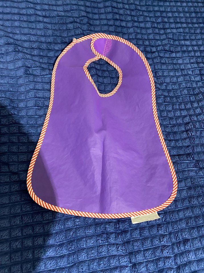 Mor renkli, desen içermeyen bebek önlüğü, renkli çizgili kenar detayına sahiptir ve kolay kullanım için boyun kısmı açıklıklıdır. Benim bebeğim asla ve asla önlük kabul etmiyor hangisini aldıysam çıkardı pvc kumaş hiç kullanılmadı katladığım için kırışmış çok uyguna koyuyorum