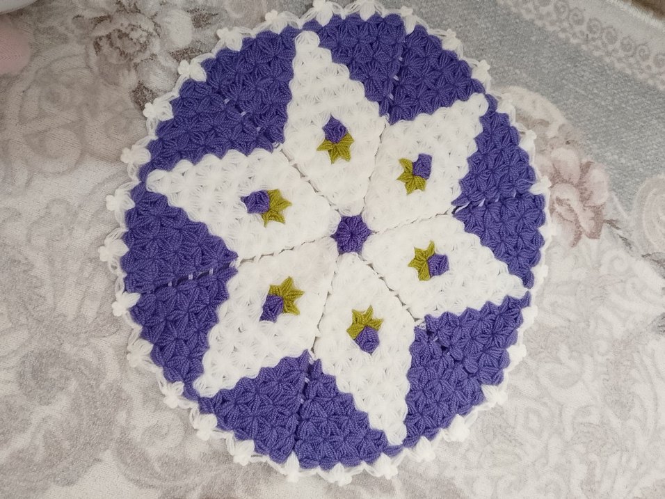 Mor Beyaz Çiçek Desenli Örgü Lif