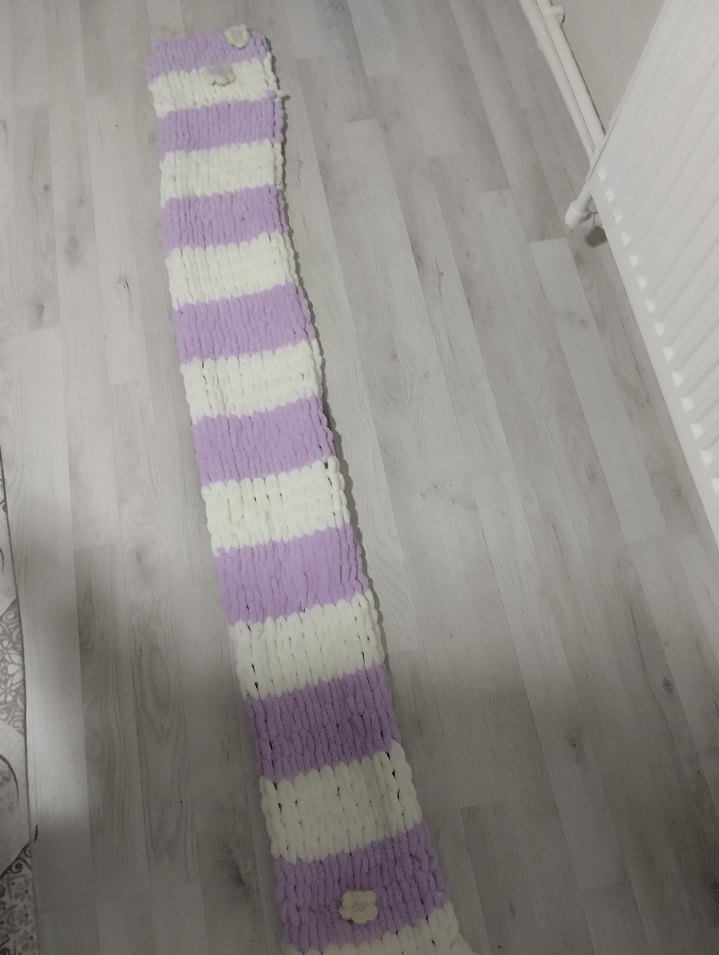Mor Beyaz Çizgili Kadın Örgü atki