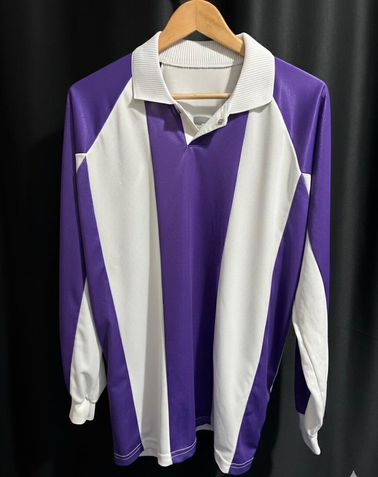 Retro Vibes Full Gaz! Mor-beyaz çizgili polo yaka vintage futbol forması. Klasiklerin en güzeli, 90’lar nostaljisi… Koleksiyona giren var mı? Beden: L - XL Uygun En: 56 Boy: 76 Durum: Temiz, vintage ürün