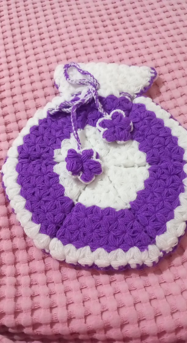 Mor Beyaz Örgü lif Kese