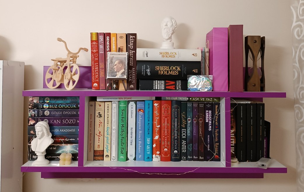 mor beyaz raf kitaplık 45*22*90