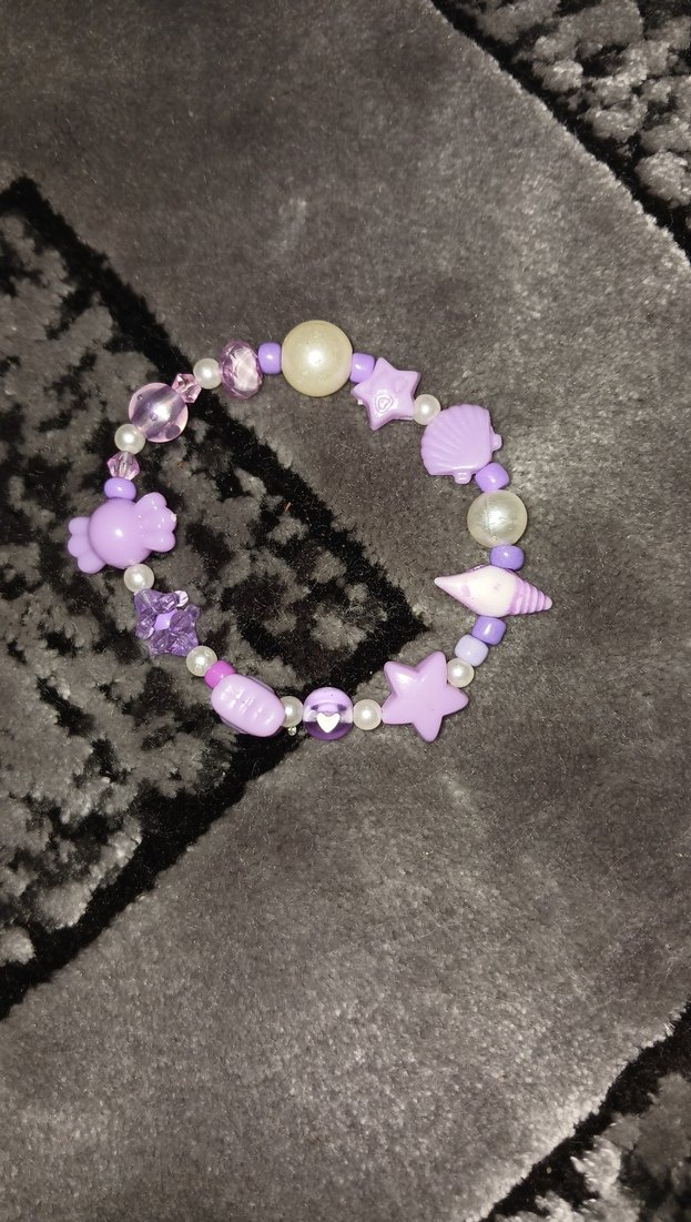 mor boncuklardan tasarlanmış bir bileklikler
