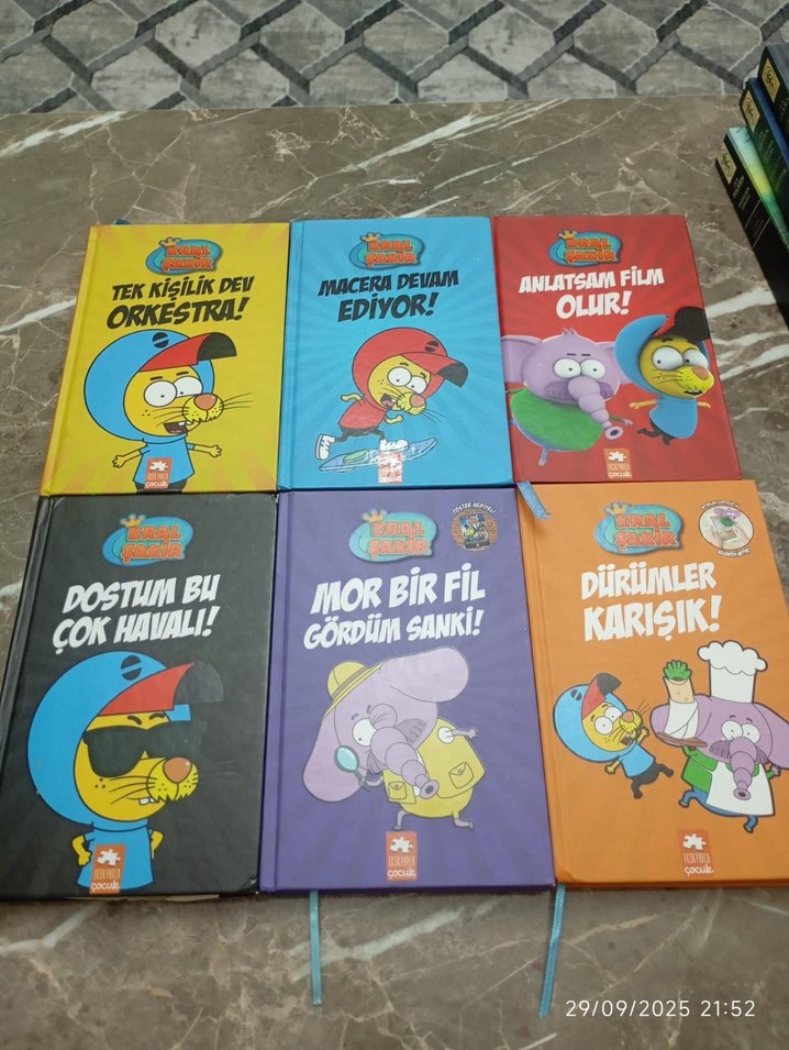 Renkli kapaklı, eğlenceli karakterler ve heyecanlı hikayeler içeren 6 kitaplık çocuk kitabı seti.
