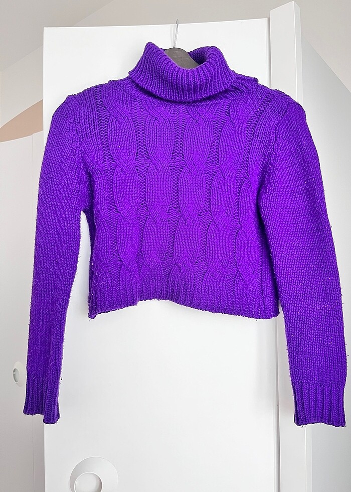 Mor boğazlı crop kazak