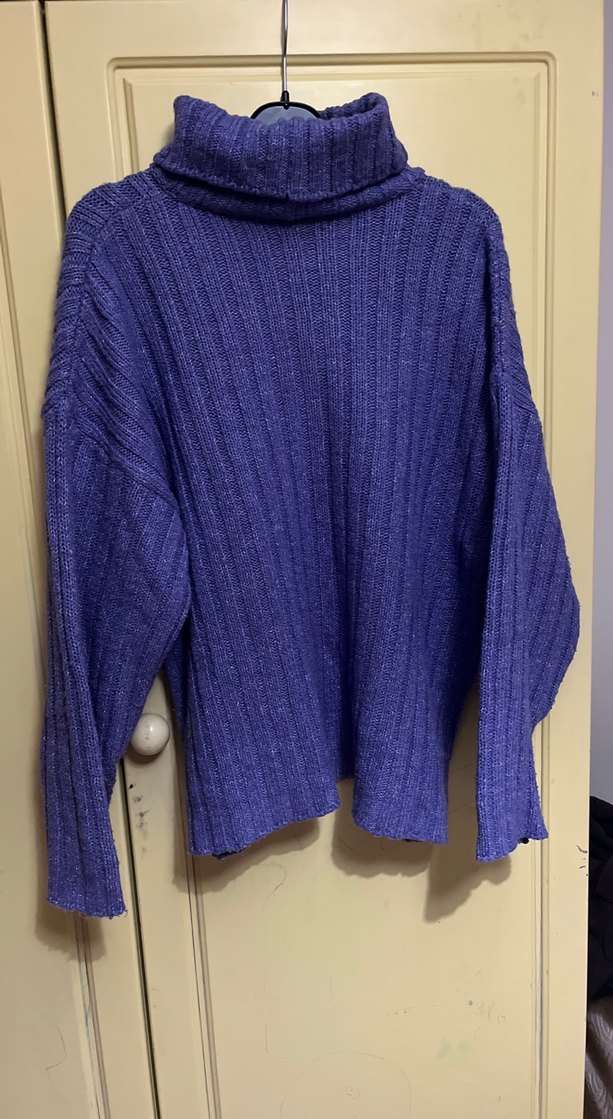 Mor renkte, boğazlı ve uzun kollu örme kadın kazak. Gevşek kesim ve normal boyda, sade ve rahat bir tarza sahiptir.