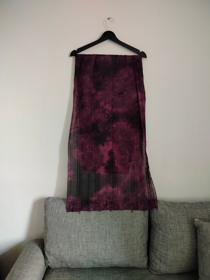 Mor renkte, dokuma kumaştan drapeli kadın şal. Bohem ve retro tarzıyla bohem, hippie kişiliklere uygun.