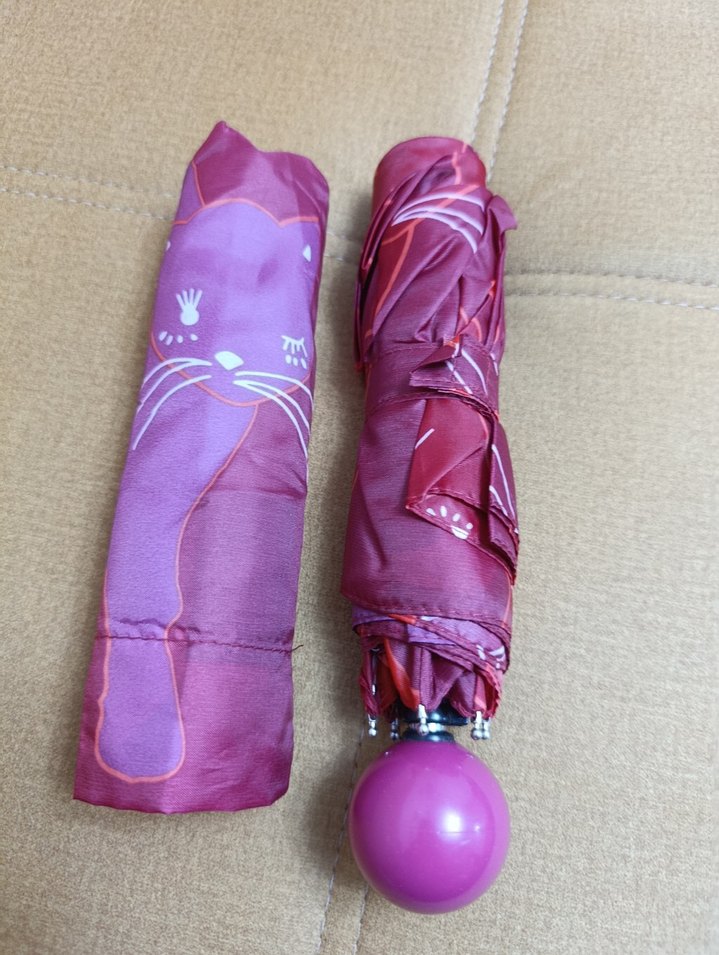 renkli mor kumaşlı, top şeklinde saplı kadın şemsiyesi. Rahat ve bohem bir tarz sunar. ☂️hiç kullanılmadı sıfır kedi desenli