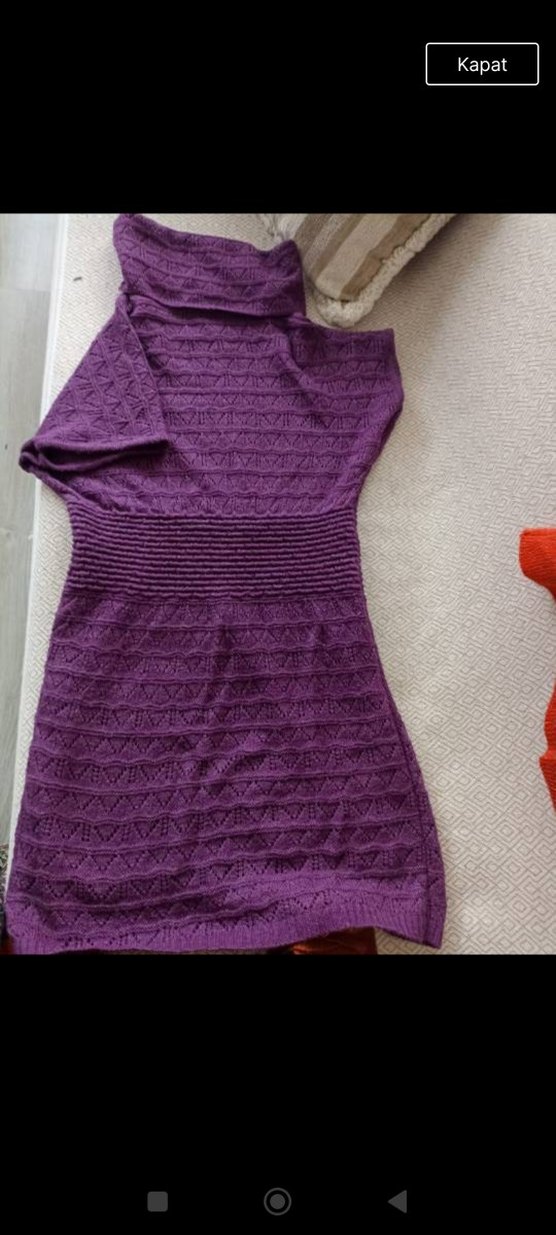 Mor Bohem Midi Örgü Kadın Süveter boğazlı temiz