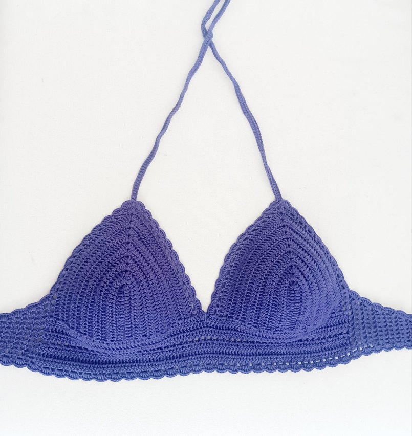 Mor bohem tarzda, el işi örgü desenli ve ayarlanabilir boyun bağlamalı renkli ve doğal görünümlü bralet. Her beden ve rengi örülür.