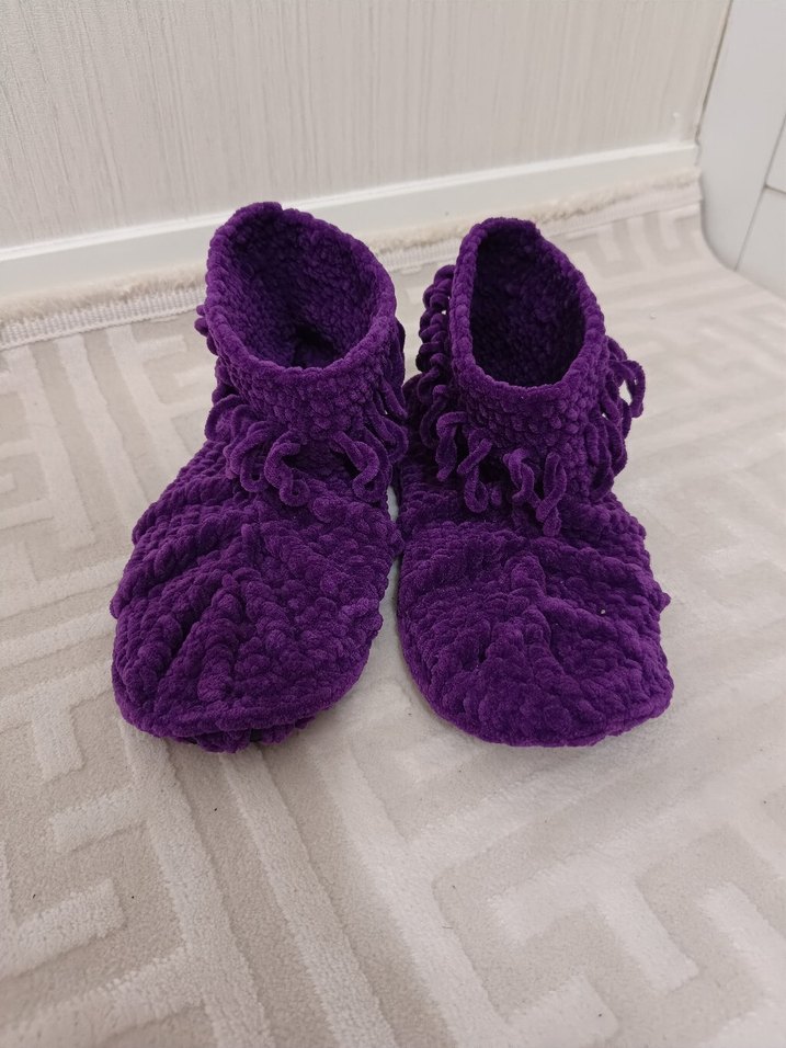 Mor Bohem Örgü Kız Ev Terliği