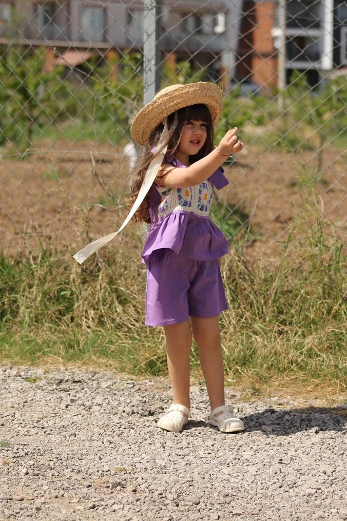Mor Bohem Tarzı Bol Kesim Kız Şortu