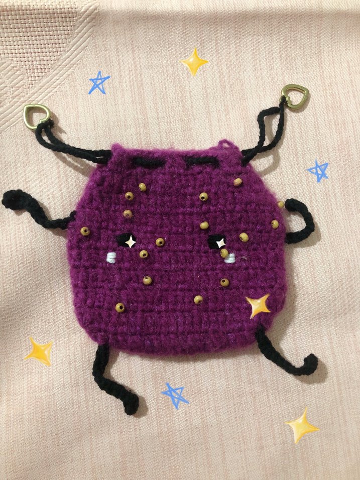 Mor Boncuk Detaylı Örgü Junimo Kese , Kulaklık Kılıfı.