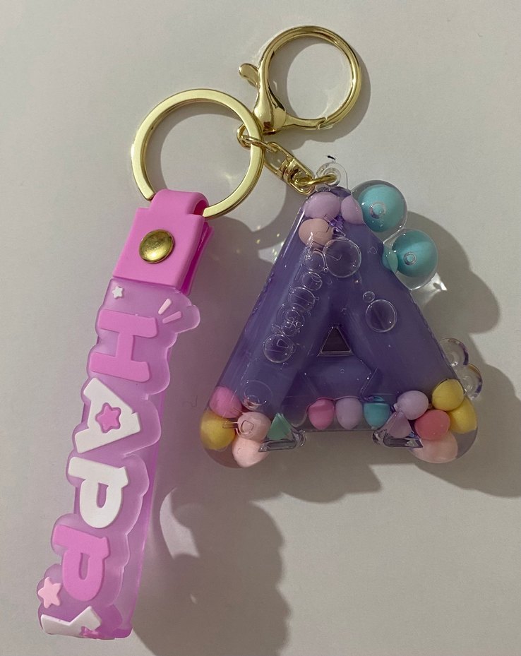 Farklı figürlere bürünmüş harf kişiselleştirilmiş anahtarlık çanta charm - içi susim ve renkli boncuklardan oluşuyor