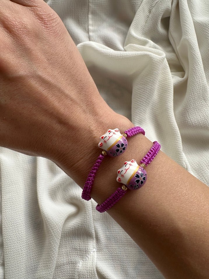 Mor boncuklarla işlenmiş, bohem tarzda günlük kullanıma uygun renkli ve canlı bileklik.