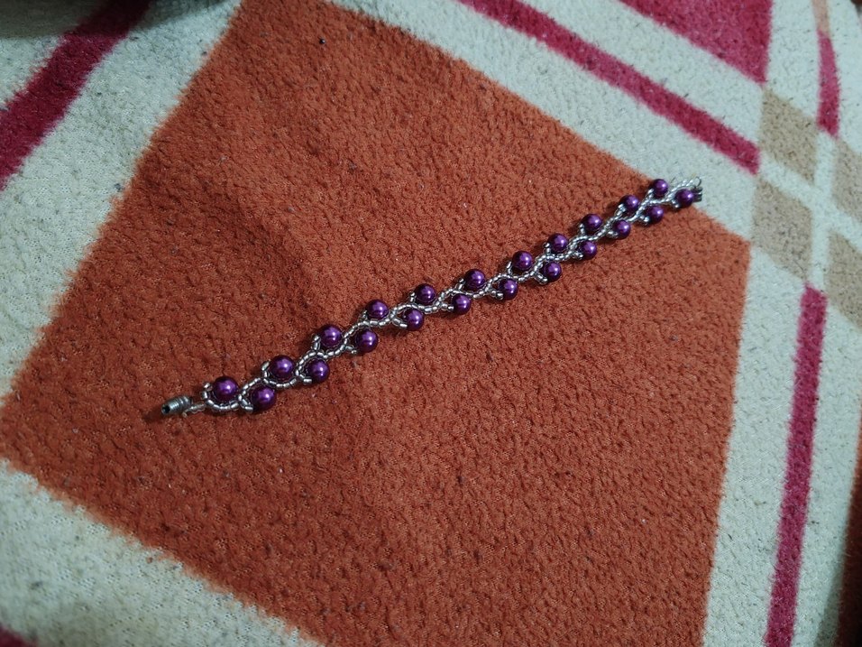 Mor boncuklu ve işlemeli detaylara sahip, rahat bohem tarzda günlük kullanıma uygun bileklik. El emeği takı