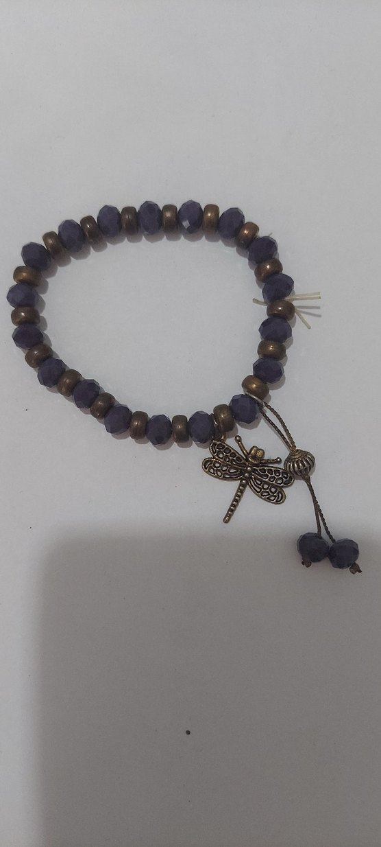 Mor boncuklar ve koyu bronz detaylarla süslenmiş bohem tarzda kadın bilekliği, günlük kullanım için uygundur.