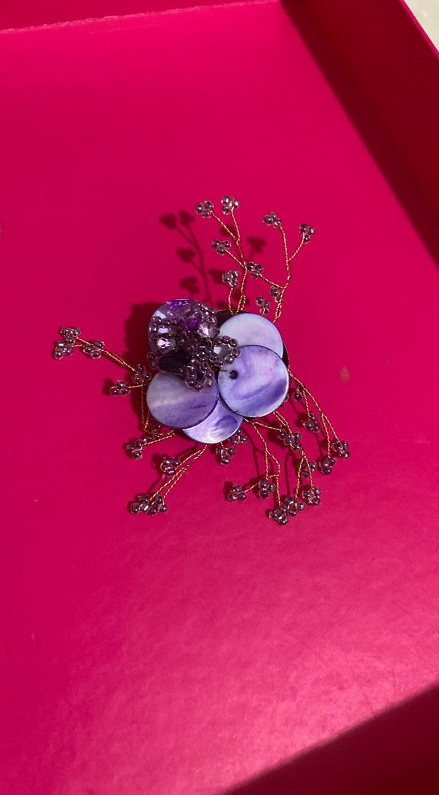 Boncuklu broş mor, renkli boncuklar ve bohem tarzıyla, trend belirleyiciler için avangart bir görünüm sunar.