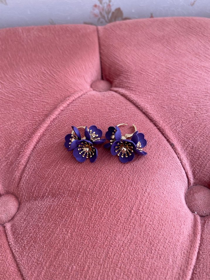 Mor renkli, boncuk detaylı kısa çiçek küpeler. Bohem ve retro tarzıyla romantik akşamlar için uygun.