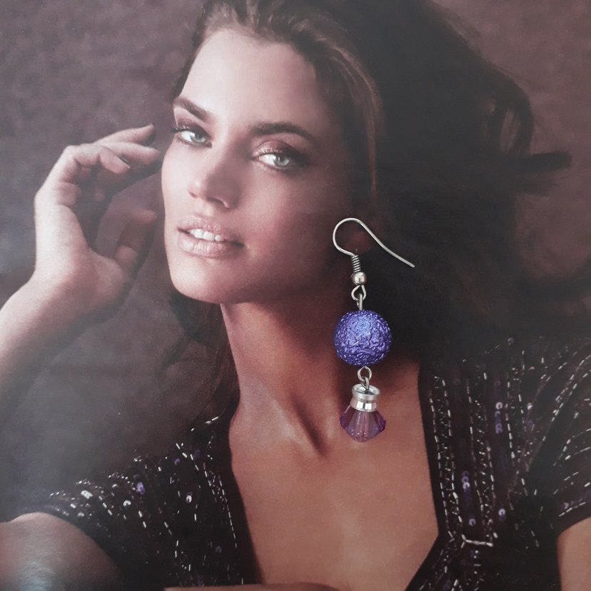 Mor renkte boncuklu, kısa ve etnik desenli mini küpeler, bohem ve gotik tarzda uygun.Çift küpelerdir.