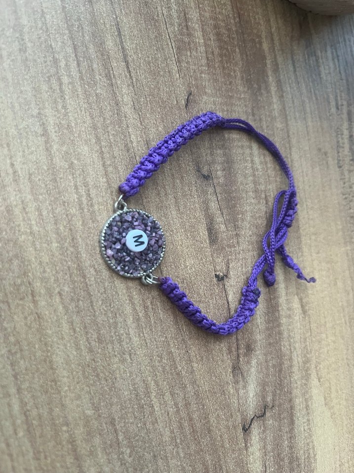 Mor boncuklu ve nakışlı detaylara sahip, bohem tarzda renkli bileklik. Günlük kullanıma uygundur.