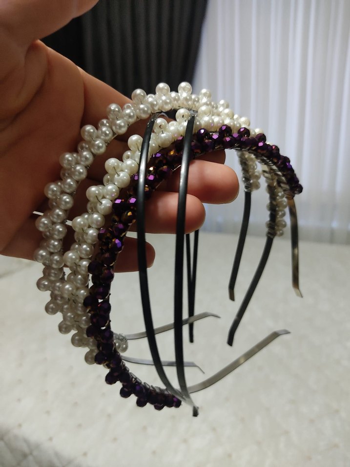 Mor boncuklarla süslenmiş koyu renk örgü taç, gotik ve avangart tarzda trendsetterlar için uygundur. ✨