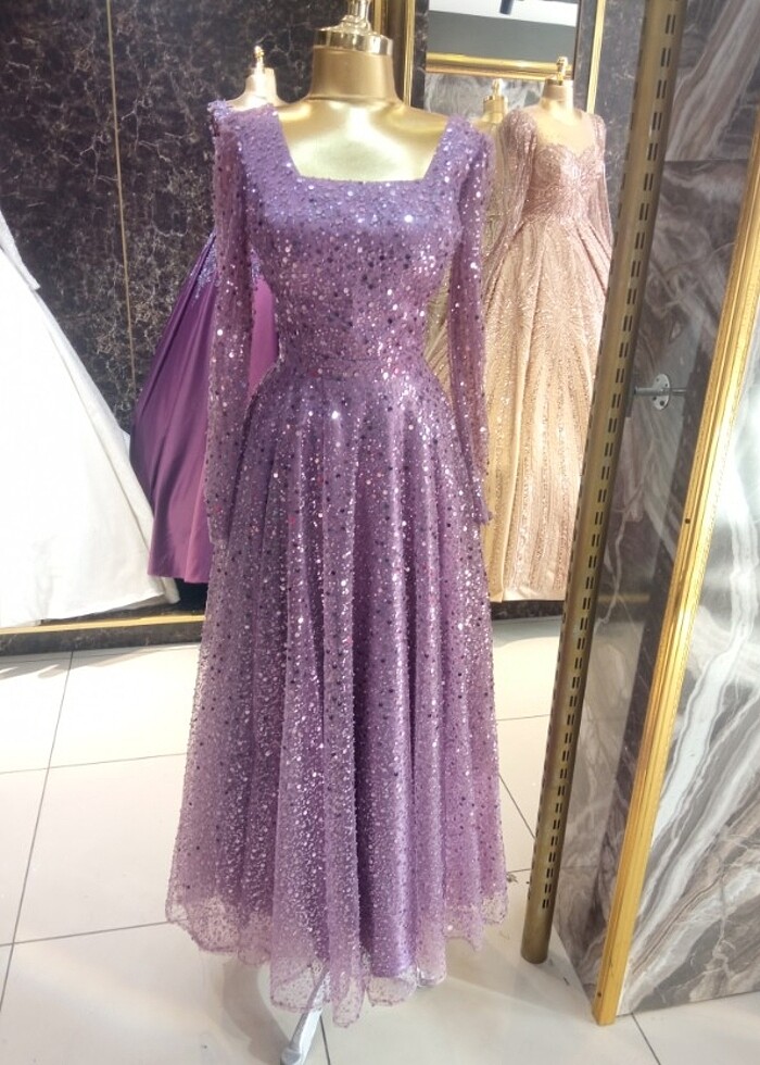 Mor boncuklu payetli abiye