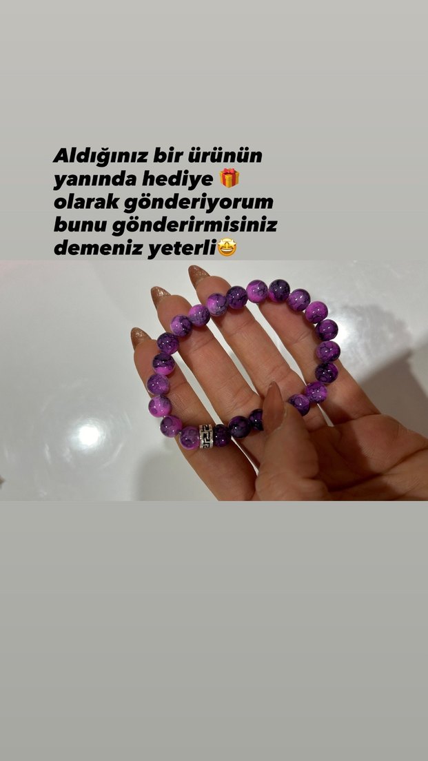 Koyu mor tie-dye desenli boncuklardan oluşan, minimalist ve bohem tarzda kadın bileklik, günlük kullanım için uygundur. Aldığını bir ürünün yanında hediyedir