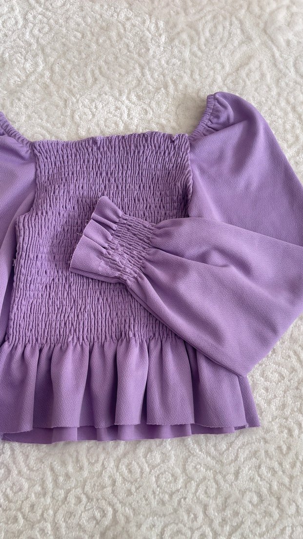 Mor Büzgülü ve Fırfırlı Bohem Bluz