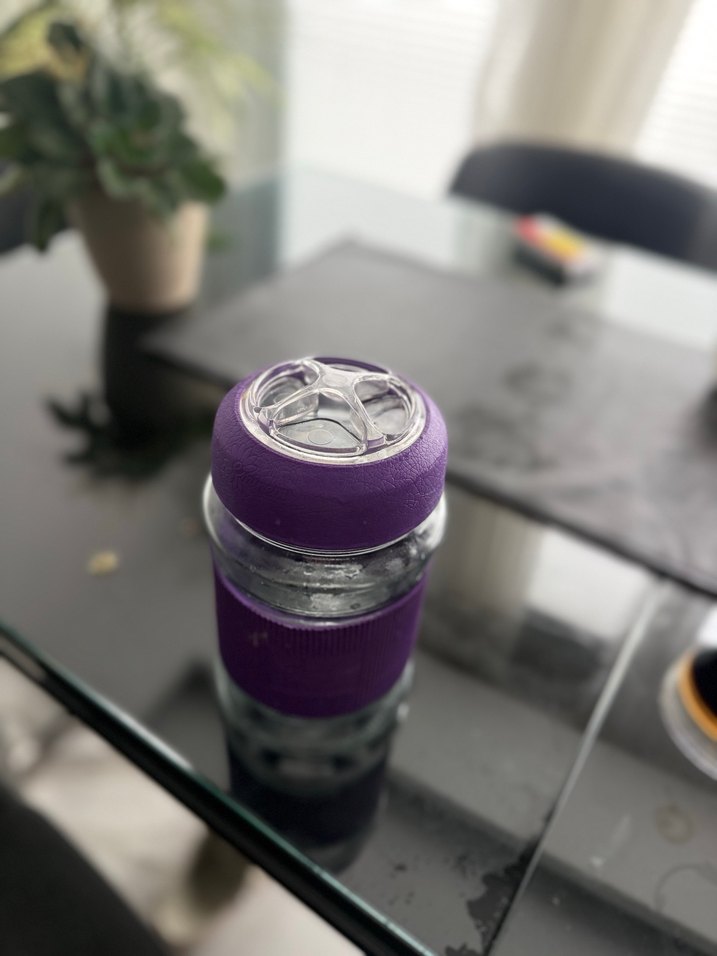 Mor renkli, güvenli kapaklı ve rahat tutuşlu