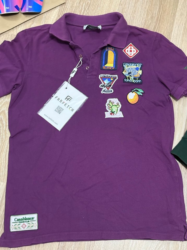 Mor renkli, kısa kollu ve regular fit kesime sahip erkek polo tişörtü. Düğmeli detaylar ve ön kısmında renkli baskılı yamalar bulunur, rahat tekstil kumaştan üretilmiştir.