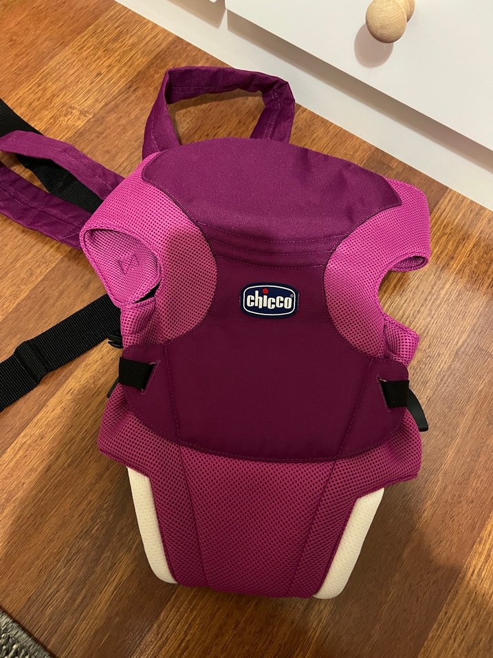 Ayarlanabilir askılı, yumuşak destekli mor Chicco bebek taşıyıcı defo leke vs yok temiz