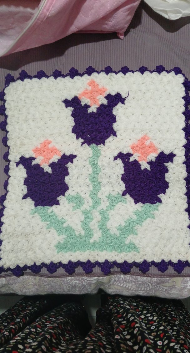 Beyaz, mor, pembe ve yeşil renklerde çiçek desenli, dokulu el yapımı açık mor banyo süngeri.