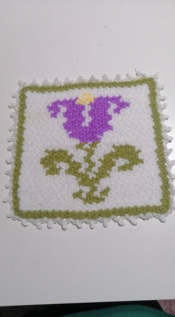 Yeşil ve sarı detaylı çiçek desenine sahip açık mor renkte yumuşak dokulu banyo süngeri.