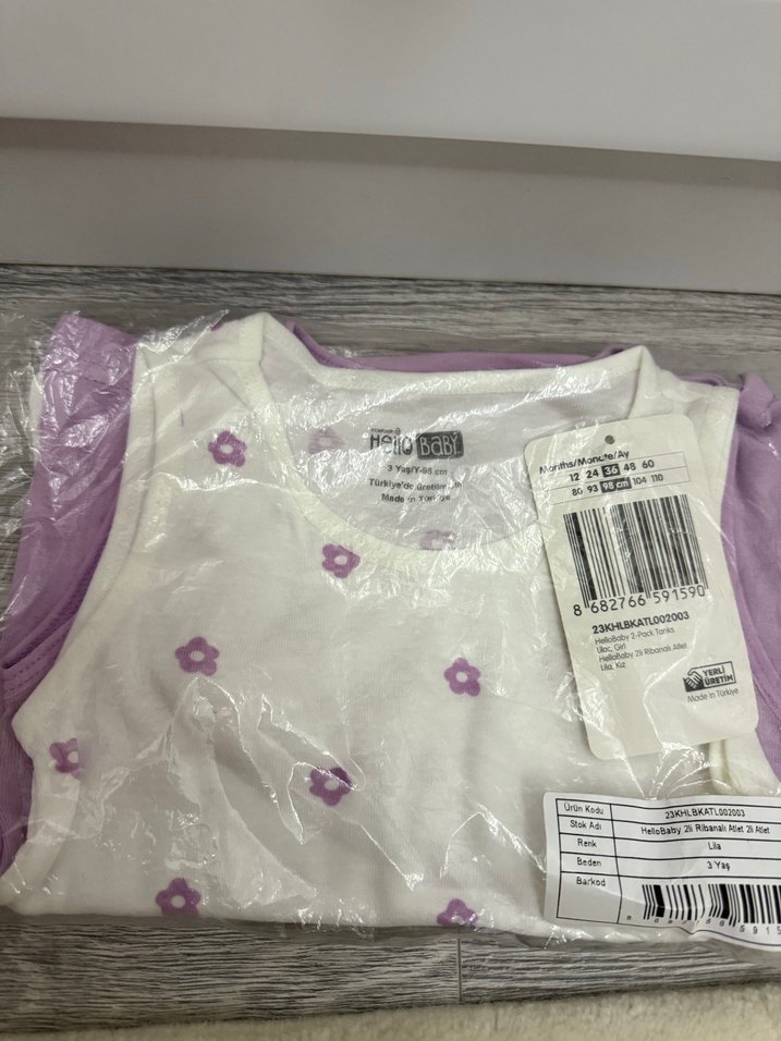 Bu çocuk atleti, yumuşak pastel mor renkte küçük çiçek desenlerine sahiptir. Çocuklar için uygun rahat kumaştan üretilmiştir.