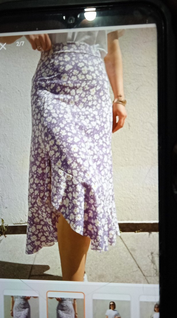 Mor Çiçek Desenli Midi Etek