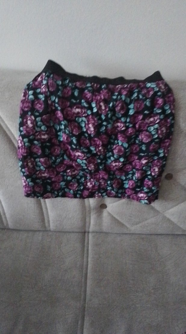 Yumuşak sentetik kumaştan, mor çiçek desenli, sıkı kesim mini etek. Örgü dokusu sayesinde rahat ve sıcak bir his verir.