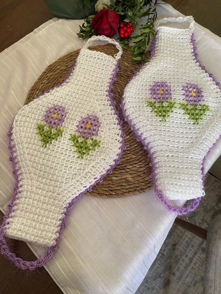 Mor Çiçek Desenli Örgü Banyo Süngeri