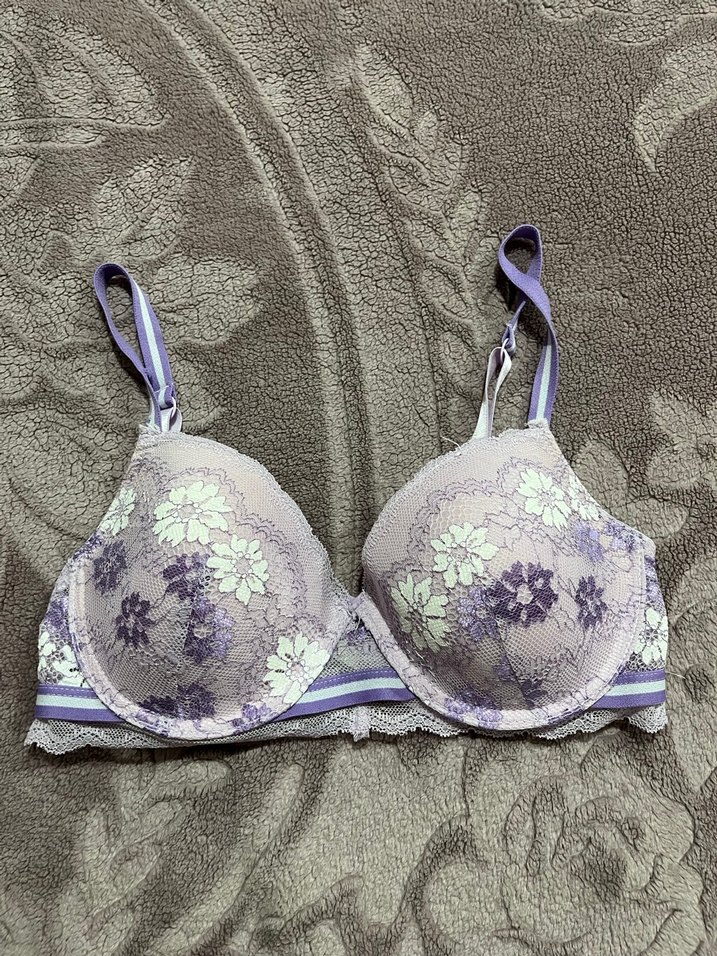 Mor renkte, çiçek desenli, ayarlanabilir askılı, bohem tarzda rahat sütyen. Yeni gibidir, bir kere kullanıldı Beden: 75 B