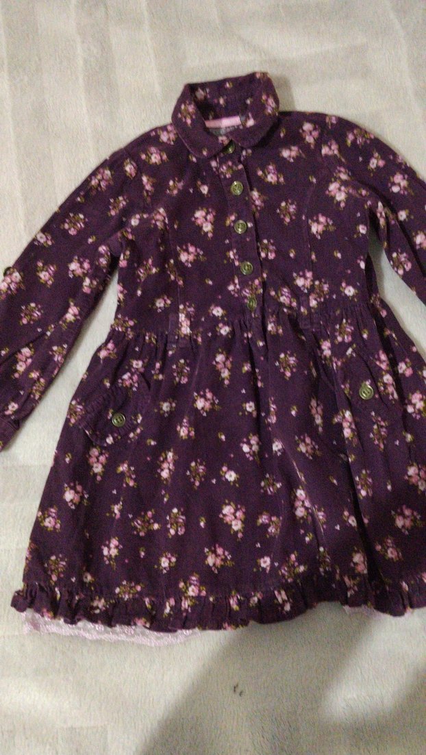 Mor Çiçek Desenli Uzun Kollu Kız Elbisesi