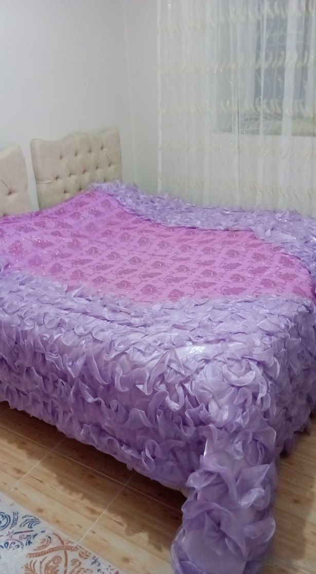 Mor Çiçek Desenli Yatak Örtüsü yastiklarida vardir