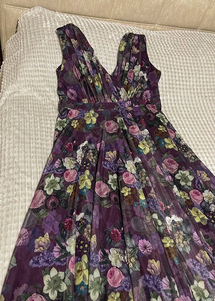 Mor çiçekli abiye elbise
