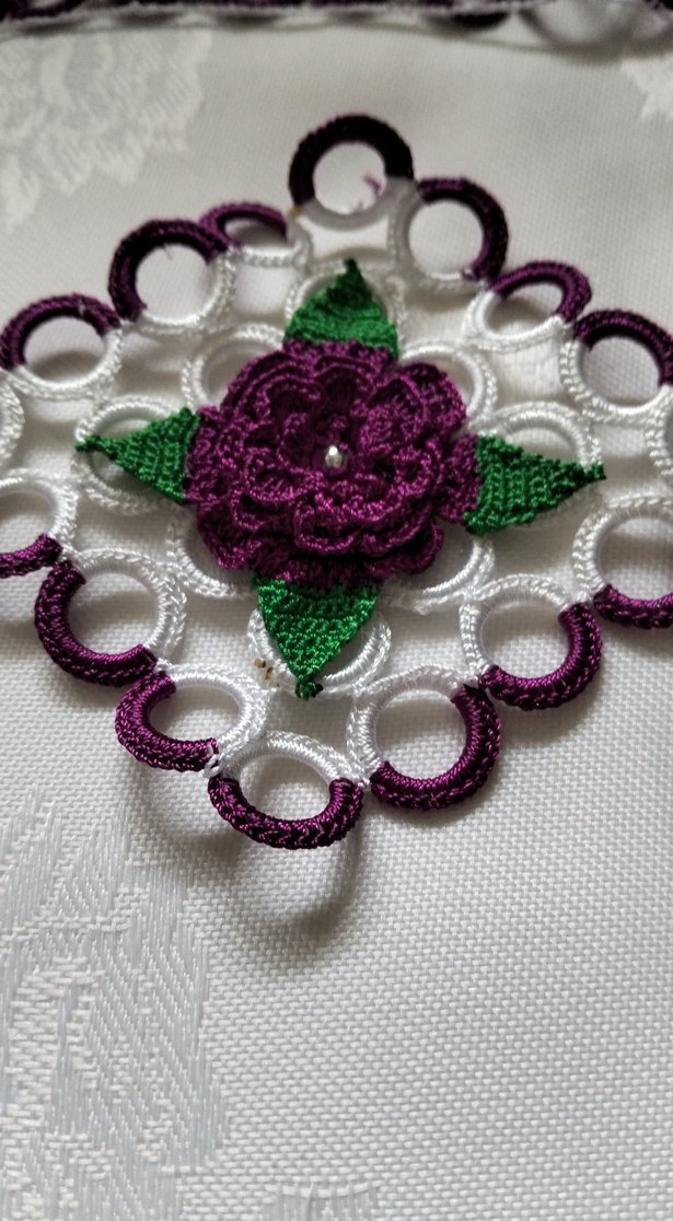 Mor Çiçekli Bohem Dantel Motif havlu kenar ve üstü çeyiz